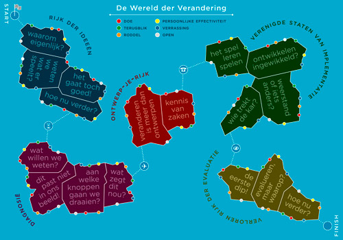 Samen met Jeroen Koppens (KOCK) heb ik een bordspel gemaakt voor met name MT's in het onderwijs. Het spel helpt om terug te kijken op, vooruit te kijken naar of te leren van een huidige verandering. Het spel kent reflectievragen, feedbackvragen en verrassingsvragen en wordt telkens op maat begeleid.
